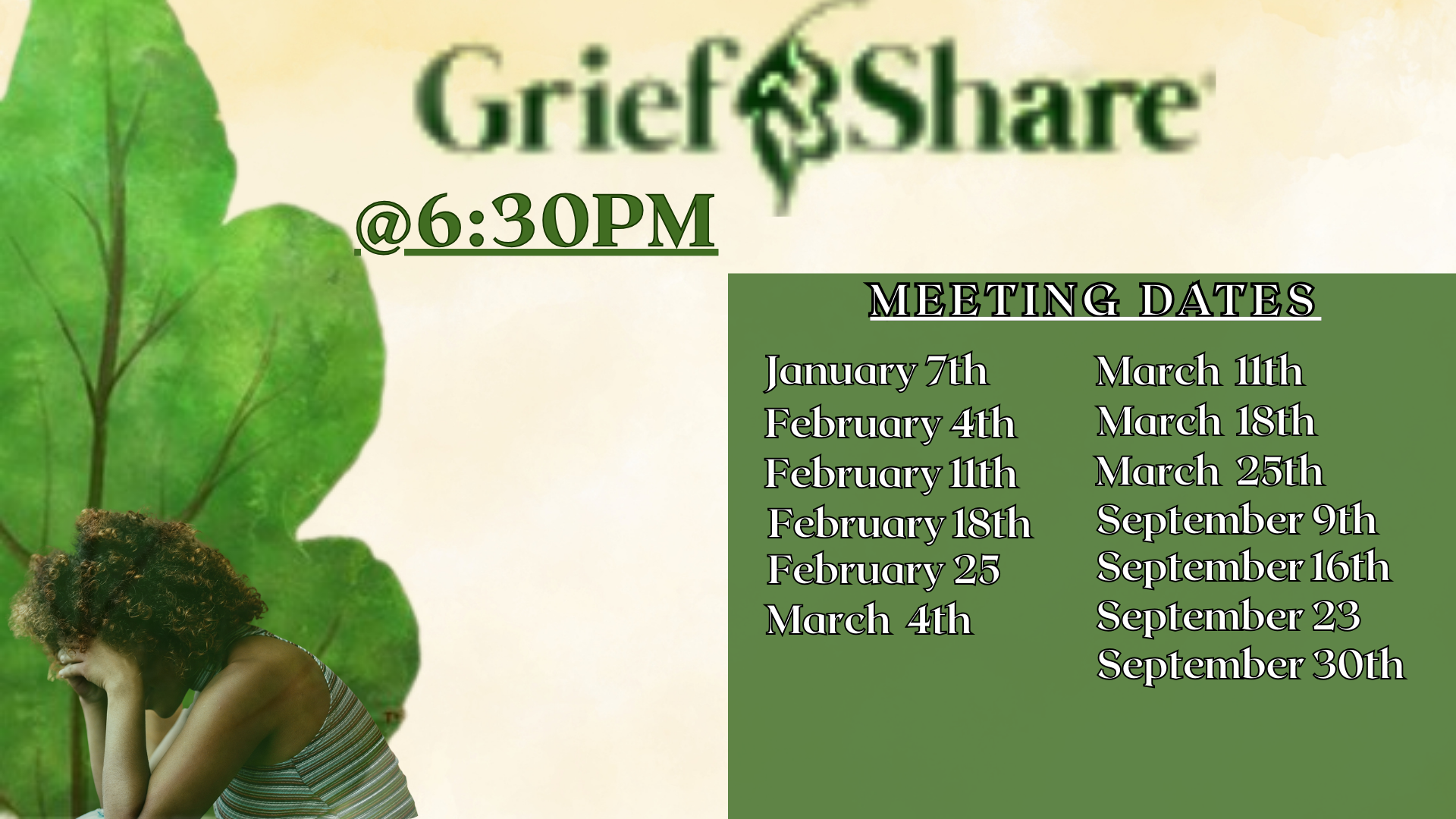 GriefShare Meeting Wednesday, January 7, 2026 6:30 PM Wednesday, September 30, 2026 6:30 PM Greater Mount Sinai Baptist Church 1243 West Boulevard Charlotte, NC, 28208 United States of America (map) Google Calendar ICS