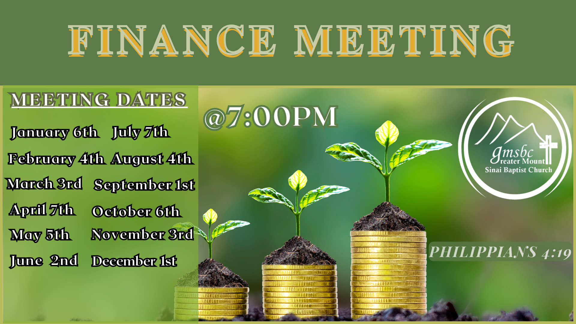 Back to All Events Finance Meeting Tuesday, January 6, 2026 7:00 PM Tuesday, December 1, 2026 8:00 PM Greater Mount Sinai Baptist Church 1243 West Boulevard Charlotte, NC, 28208 United States of America (map) Google Calendar ICS