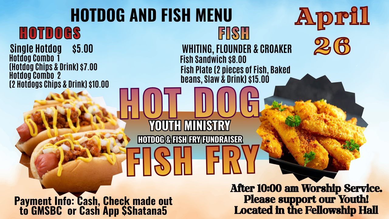 Youth Ministry Hotdog Fish Fry Menu